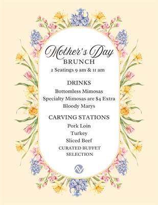 Join us on Sunday, May 10th, 2026, for a delicious and memorable morning featuring two convenient seating times: 9:00 AM and 11:00 AM. Treat Mom to an abundant buffet filled with all her brunch favorites — including French toast, bacon, crepes, shrimp cocktail, house salad, fresh fruit, fresh vegetables, pastries, hashbrowns, and so much more!